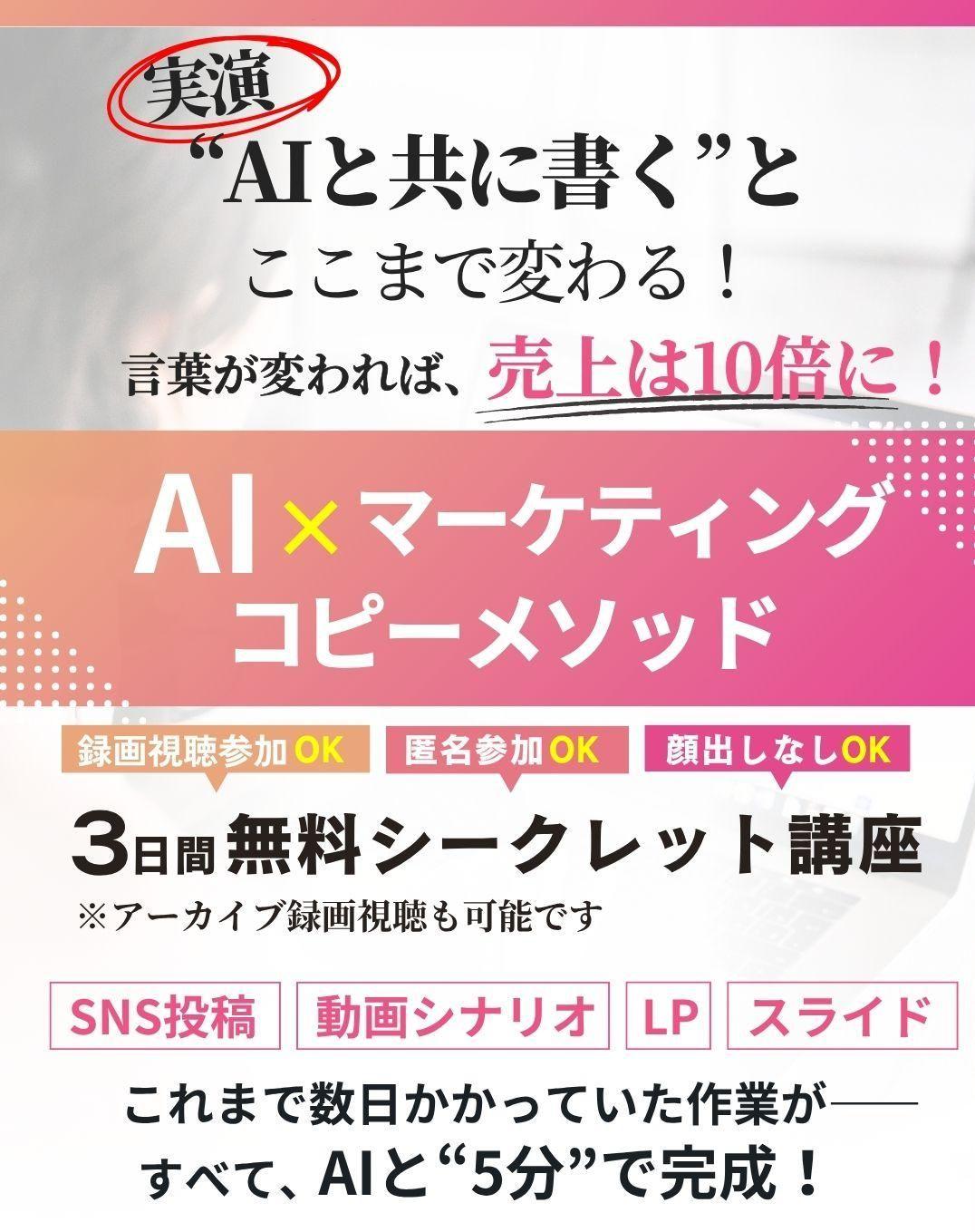 【無料】AI×マーケティングコピーメソッドを身につける(5大特典付)